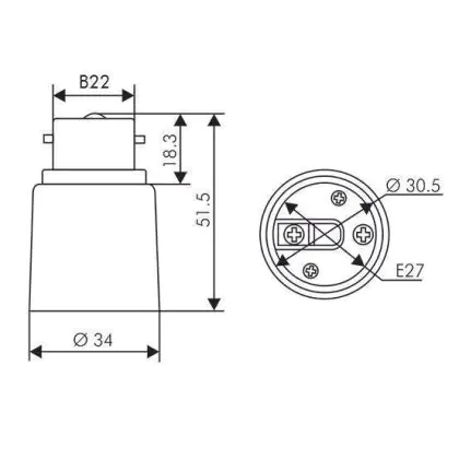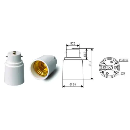 Beschrijving Fitting Adapter voor Lamphouders B22 => E27 Wit