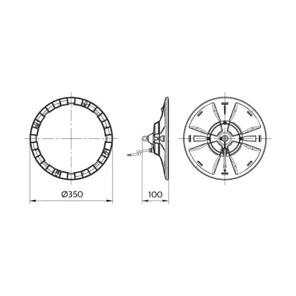 Dit armatuur heeft de kleurtemperatuur 4000K - Koel Wit. Wat houdt dit eigenlijk in? Lichtkleuren bepalen de sfeer in een ruimte. Zo is warm wit (3000K) geschikt voor algemene ruimtes en stallen, koel wit (4000K) voor stallen, magazijnen, loodsen en productiehallen, en daglicht wit (6500K) voor productiehallen (detailwerk). Bepaalde omgevingen kunnen verlicht worden met meerdere lichtkleuren. Dit heeft met name te maken met de hoeveelheid natuurlijk daglicht in de ruimte; hoe minder dit is, hoe koeler de lichtkleur keuze. Het licht van deze LED high bay wordt verspreid in een stralingshoek van 180°.