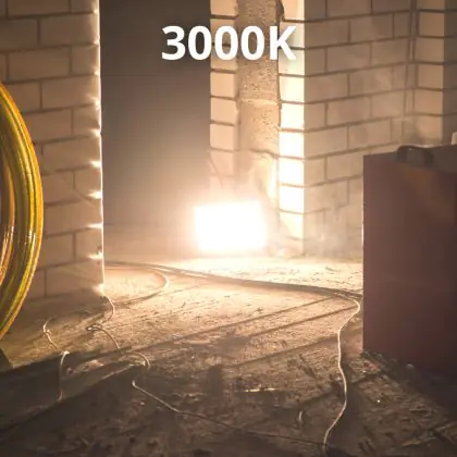 De lichtkleur wordt aangeduid in Kelvin waardes. 3000K staat voor warm wit. De Noxion Floodlight wordt ook wel een bouwlamp of breedstraler genoemd dit komt omdat de floodlight gebruikt wordt voor het verlichten van bouwterreinen, parkeerplaaatsen, erfen en reclameborden.