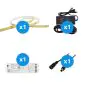 Het grote voordeel van deze complete set is dat je alle accessoires hebt die je nodig hebt om de beste lichtaccenten voor je huis of bedrijfspand te creëren. Je hoeft niet op zoek te gaan naar de juiste apparatuur; je hoeft alleen maar alle elementen met elkaar te verbinden. Daarna steek je de stekker in het stopcontact in je huis. Je kunt hier alles over lezen in onze installatieblog. Deze set bevat een: