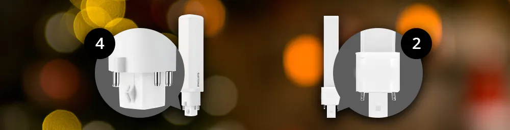 | G24q-2 fitting (4-pins) | traditionele 2-pins PL-C spaarlampen van 18W |