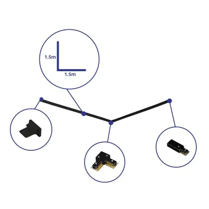 Beschrijving Rail Set 1-Fase L 1,5 x 1,5 Meter Zwart | incl. Eindkap, Voedingsconnector en L -Verbindingsstuk