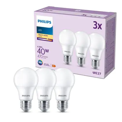 Beschrijving Voordeelpak 3x Philips Lamp LED E27 Peer Mat 5W 470lm - 827 Zeer Warm Wit